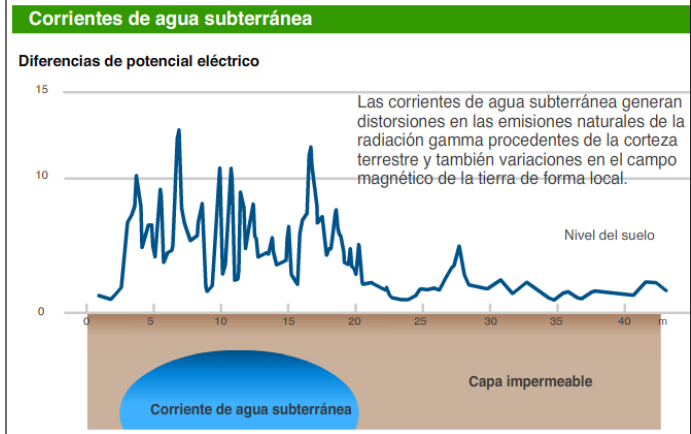 Las venas de agua subterránea son muy variables en cuando a grosor, intensidad, flujo y orientación cardinal. El agua subterránea medida que se desplaza genera fricciones con las paredes del subsuelo, aumentando el potencial eléctrico y alterando la ionización del aire, sobre la superficie terrestre.